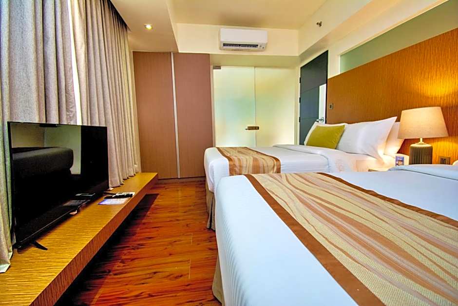Featuring a separate living area, this air-conditioned queen bed room or 2 double beds features coffee/tea making facilities, cable TV. It also comes with a refrigerator, a safety deposit box and a kitchenette. The stylish private bathroom is fitted with hot/cold shower facilities and free toiletries.